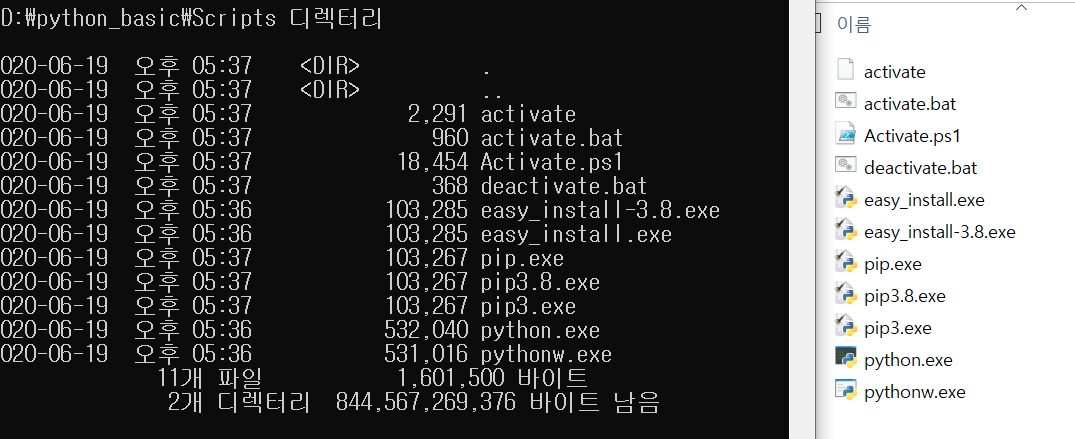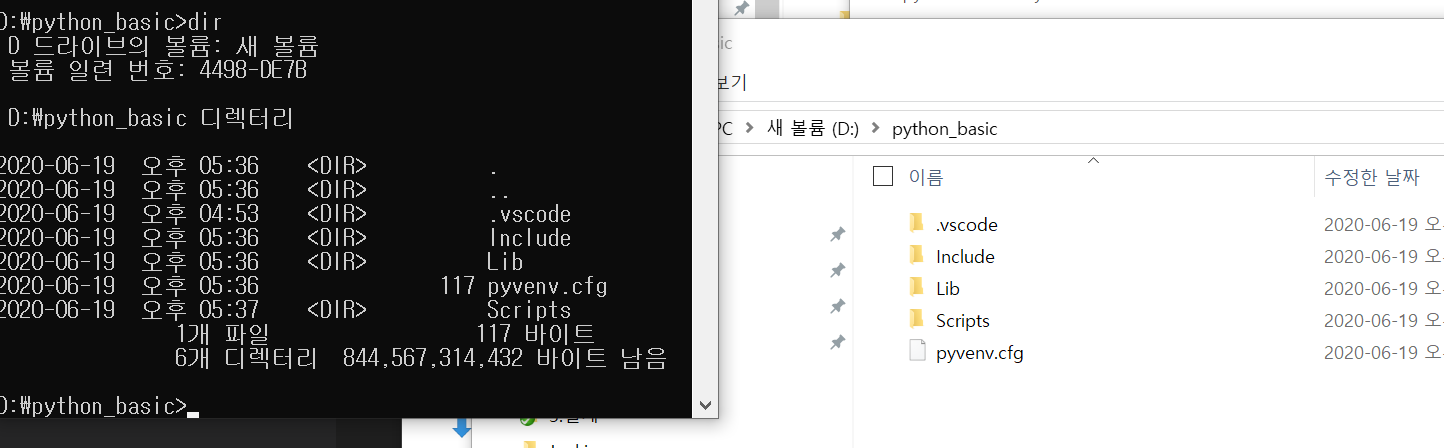 목록을 보시면 Include, Lib, Scripts폴더와 pyvenv.cfg 파일이 생성되어 있는 것을 확인할 수 있습니다.
