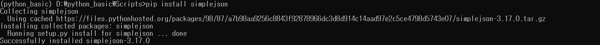 simplejson 이라는 패키지 설치 예제입니다.