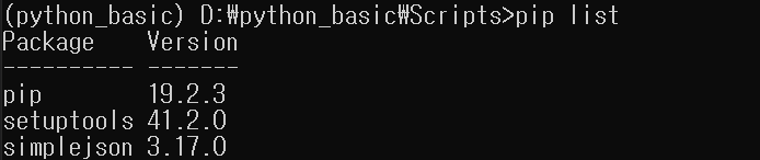 pip list명령어를 쓰면 해당 패키지가 설치됩니다.
