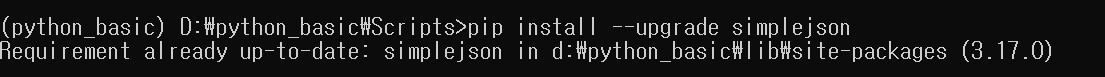 가상화 설정하여 패키지 설치한 것으로 실행되어 simplejson를 사용할 수 있습니다.