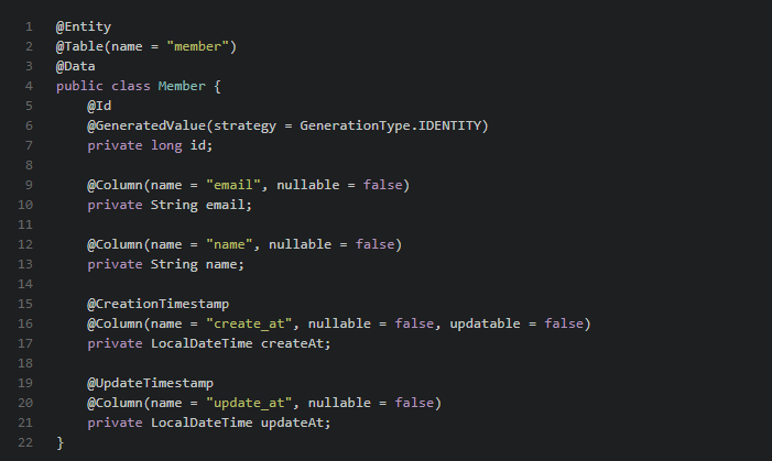 ex) SpringBoot Entity class 화면